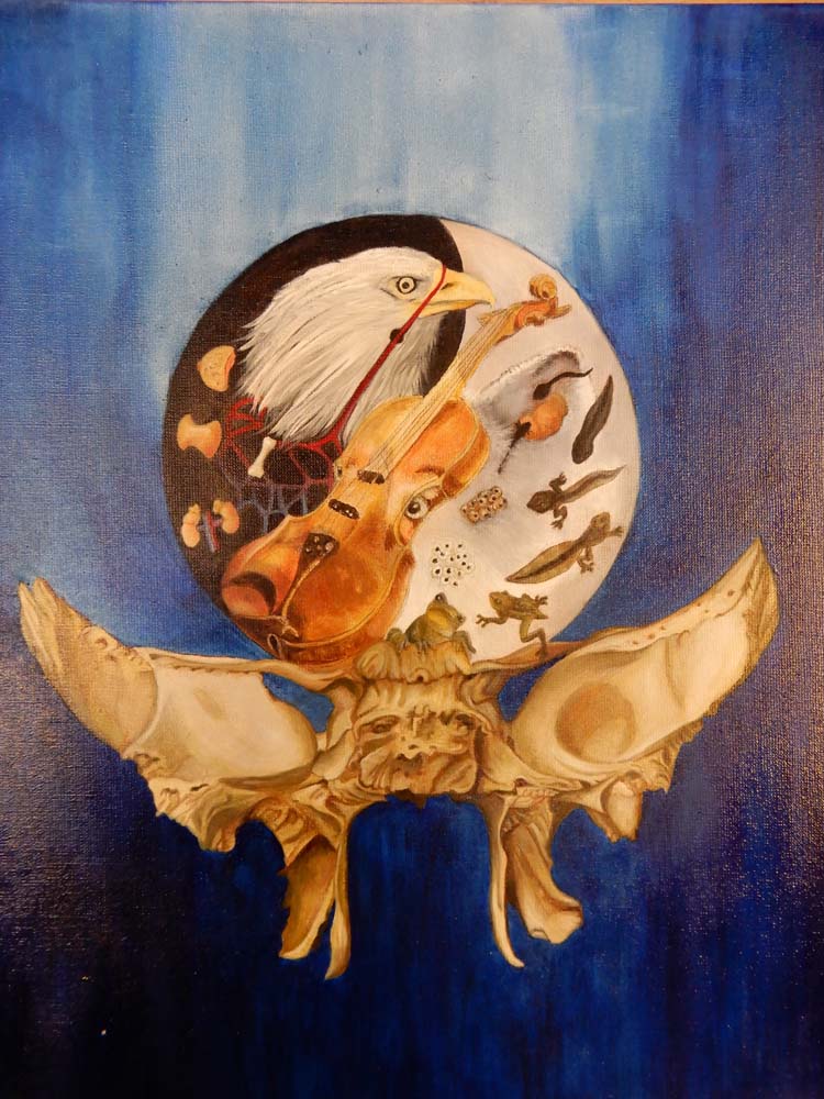 Tijdens de Kunstroute geeft Marianne een doorkijkje in haar eigen innerlijke wereld met haar nieuwe project ‘Renaissance of the Body’. Op een eigenwijze Surrealistische manier brengt ze Natuur en wetenschap, complementaire zorg en welzijn samen in twee grote werkboeken en wordt alles op kunstzinnige wijze met elkaar verbonden, getransformeerd en verbeeld in een schilderij of glasobject.