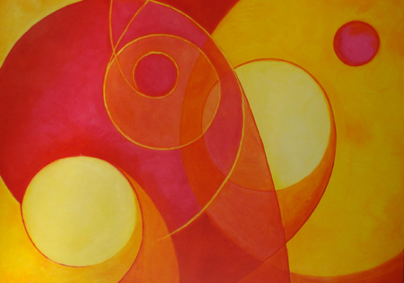Ik schilder op het moment abstracte olieverfschilderijen waarin kleur, ruimtelijkheid, beweging en ritme een belangrijke rol spelen.